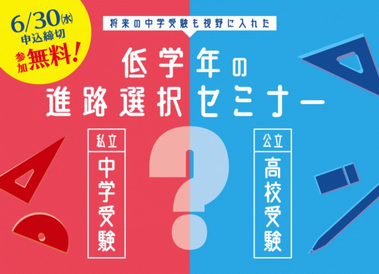 お子さまにとってベストな進路とは? まずは中学受験・高校受験の現状やそれぞれのメリット・デメリットを知ることが大切です。「公立高校進学が希望だけど中学受験もありかも…」そんな方にぜひおすすめしたいセミナーです! お気軽にご参加ください。